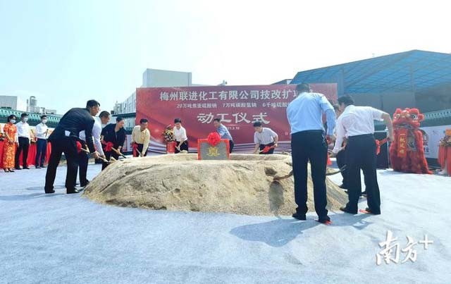 梅州聯(lián)進(jìn)化工有限公司技改擴(kuò)建今日動(dòng)工,建成后年產(chǎn)值預(yù)計(jì)達(dá)6億元 3月18日,梅州聯(lián)進(jìn)化工有限公司舉行技改擴(kuò)建動(dòng)工儀式。該項(xiàng)目工程范圍包括新建生產(chǎn)車間6棟、倉(cāng)庫(kù)4棟、辦公樓1棟和宿舍樓1棟,總計(jì)23081平方米,項(xiàng)目將在原址占地60畝上改建,總投資1億元,分三期進(jìn)行。